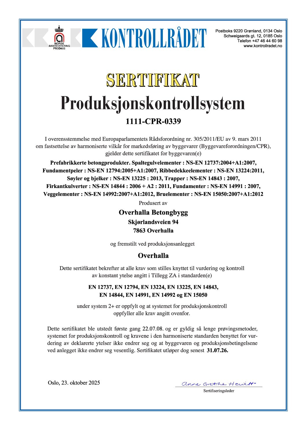 Sertifisering produksjonskontrollsystem